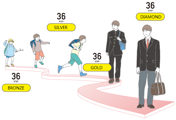 FuturKids is divided into four stages: bronze (B), silver (S), gold (G), and diamond (D), each stage consisting of 36 levels, totaling 144 levels. From the age of 3 to 18, accompany the entire growth process of the child!